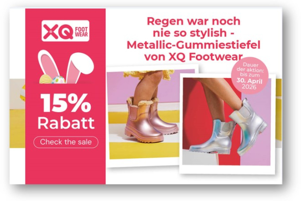 20% Rabatt | Regen war noch nie so stylish - Metallic-Gummiestiefel von XQ Footwear Mehr Details Endet in