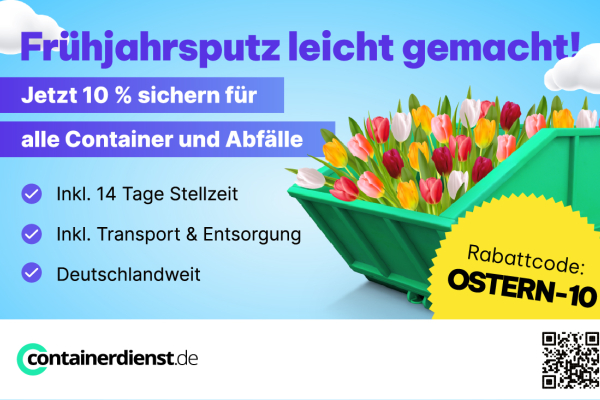 Frühjahrsputz leicht gemacht! Jetzt 10 % sichern für alle Container und Abfälle Mehr Details Endet in