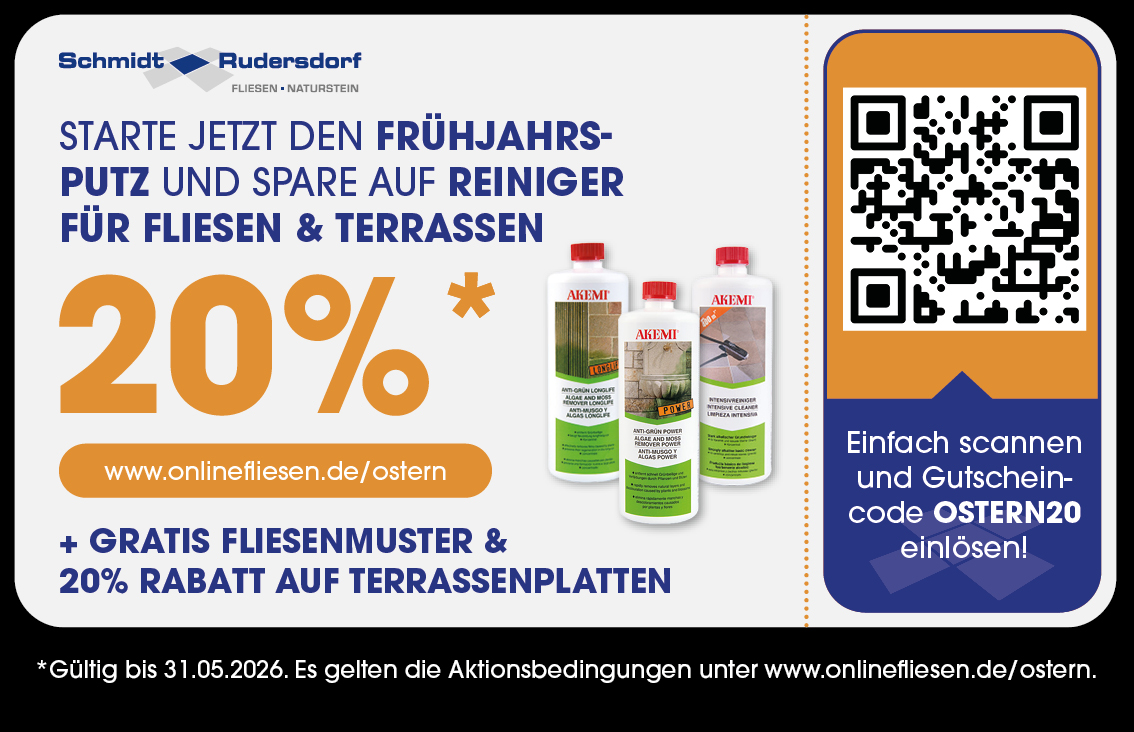 3. 20%* RABATT | STARTE JETZT DEN FRÜHJAHRS-PUTZ UND SPARE AUF REINIGER FÜR FLIESEN & TERRASSEN