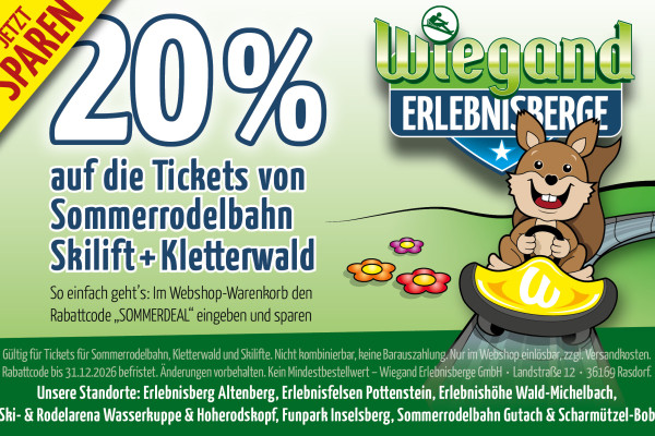 20% RABATT auf die Tickets von Sommerrodelbahn Skilift + Kletterwald