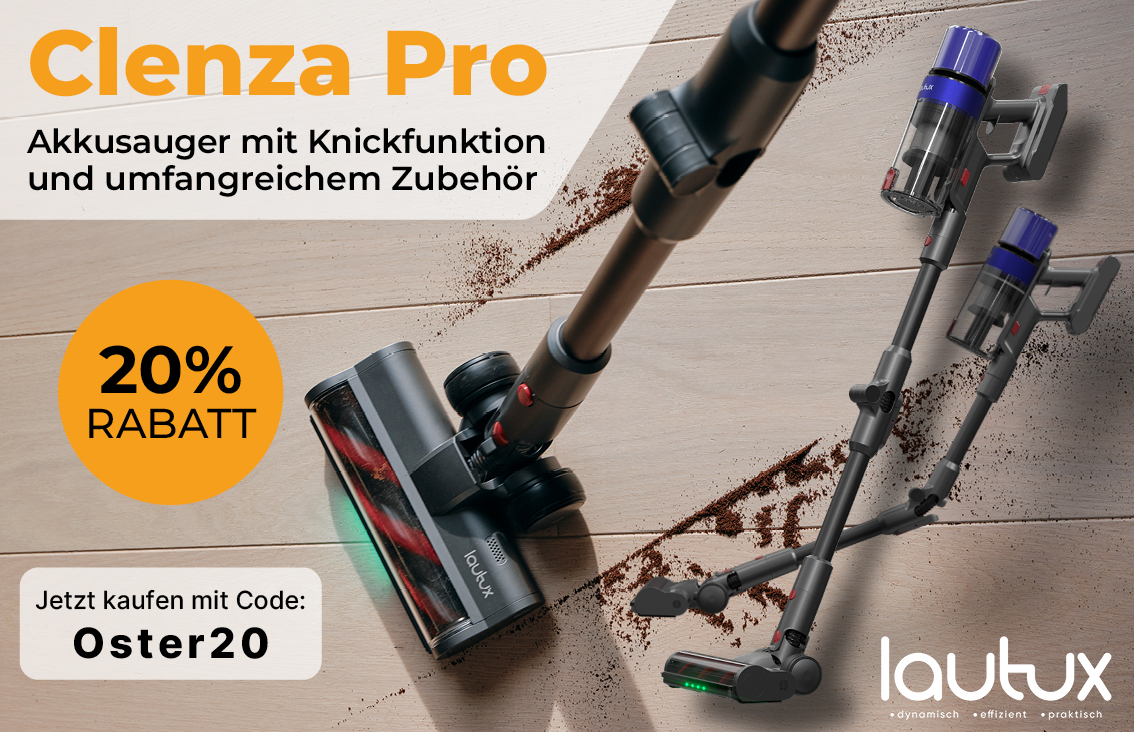 Nur gültig auf den Clenza Pro und auf den Turbotastic Pro 2 www.lautux.de. Kein Mindestbestellwert. Nicht mit anderen Gutscheincodes oder Rabatten kombinierbar. Keine Barauszahlung. Kein Rabattanspruch bei Retoure.