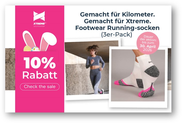20% Rabatt | Gemacht für Kilometer. Gemacht für Xtreme. Footwear Running-socken (3er-Pack) Angro B.V. Startdatum 26.03.2026 Ablaufdatum 30.04.2026 Kein Code notwendig Zum Angebot Coupon drucken! Endet in