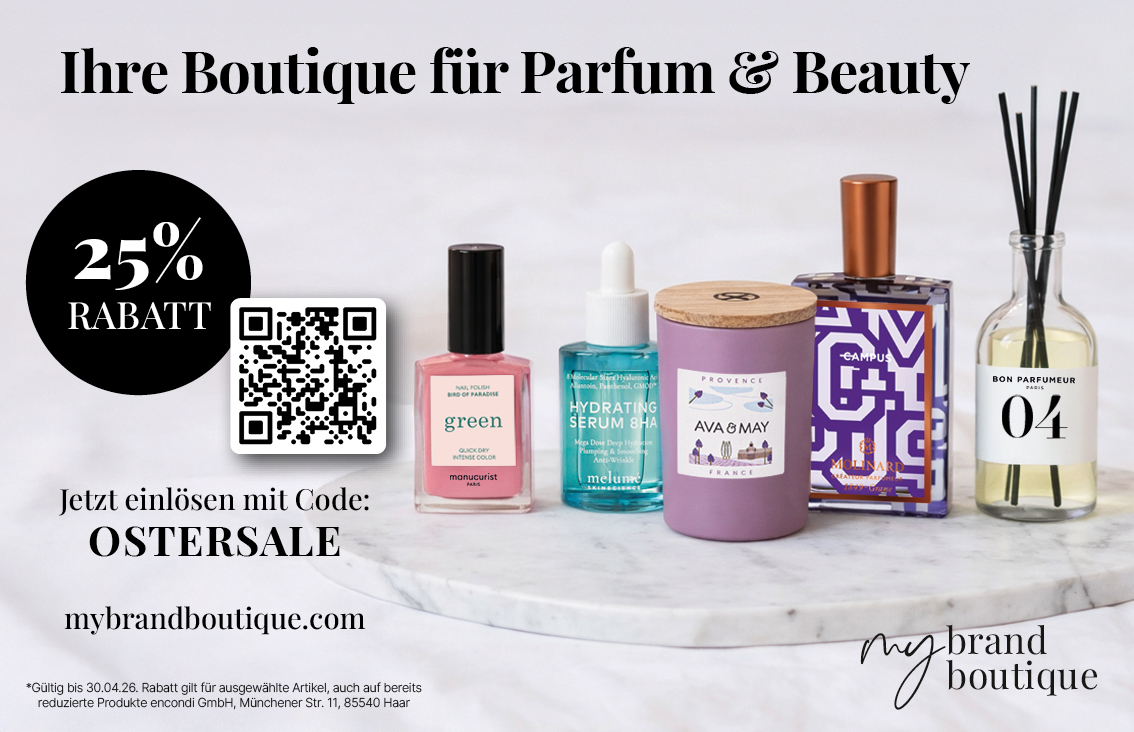25% Rabatt* Ihre Boutique für Parfum & Beauty encondi GmbH Startdatum 24.03.2026 Ablaufdatum 30.04.2026 Code OSTERSALE Couponcode kopieren Coupon einlösen Coupon drucken! Endet in