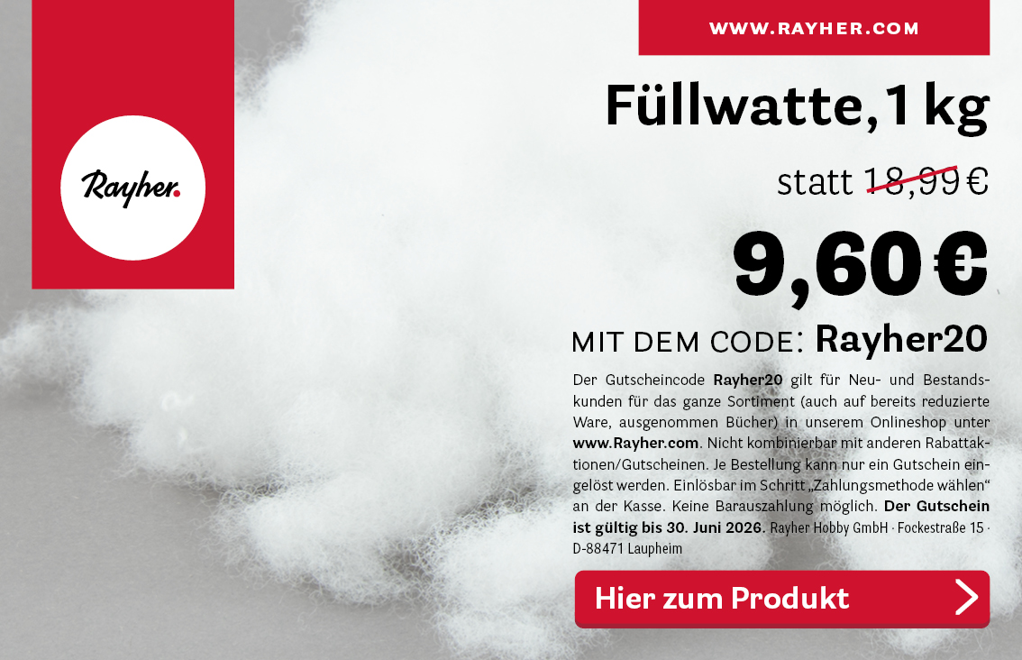 Füllwatte, 1 kg statt 18,99 € 9,60 € MIT DEM CODE: Rayher20