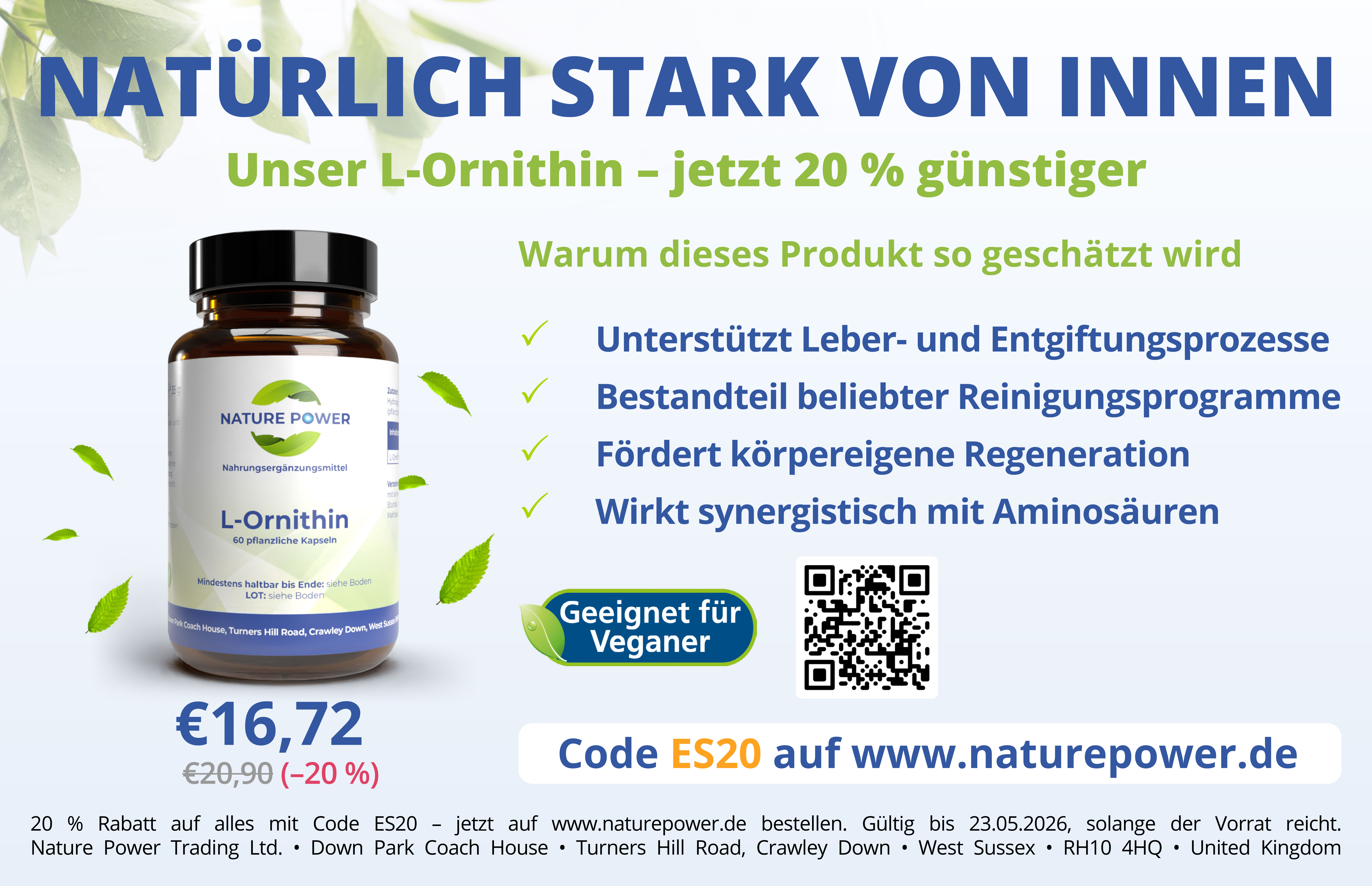 NATÜRLICH STARK VON INNEN Unser L-Ornithin - jetzt 20 % günstiger