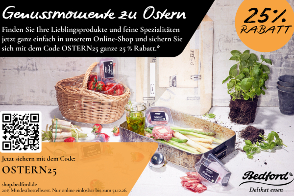 Genussmomente zu Ostern | 25% RABATT | Finden Sie Ihre Lieblingsprodukte und feine Spezialitäten! Mehr Details Endet in