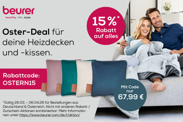 15%* Rabatt auf alles | Oster-Deal für deine Heizdecken und -kissen.