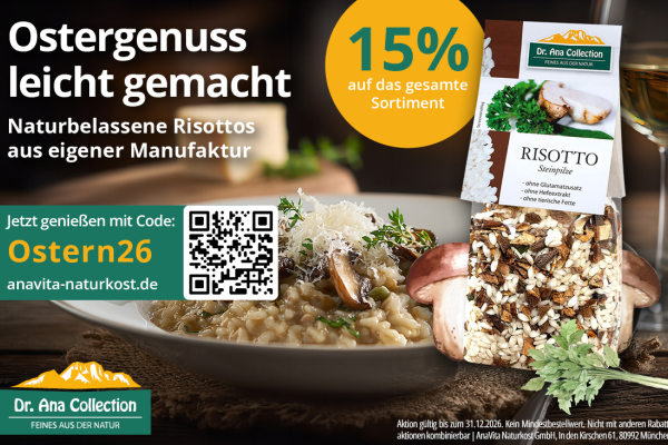 15% auf das gesamte Sortiment | Ostergenuss leicht gemacht! Naturbelassene Risottos aus eigener Manufaktur Mehr Details Endet in