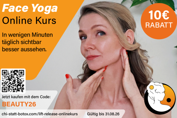 10€ RABATT | Face Yoga Online Kurs | In wenigen Minuten täglich sichtbar besser aussehen. Mehr Details Endet in