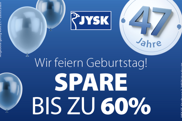 Wir feiern 47 Jahre Geburtstag! SPARE BIS ZU 60% bei JYSK