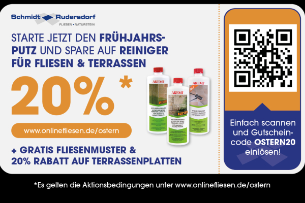 20%* RABATT | STARTE JETZT DEN FRÜHJAHRS-PUTZ UND SPARE AUF REINIGER FÜR FLIESEN & TERRASSEN Mehr Details Endet in