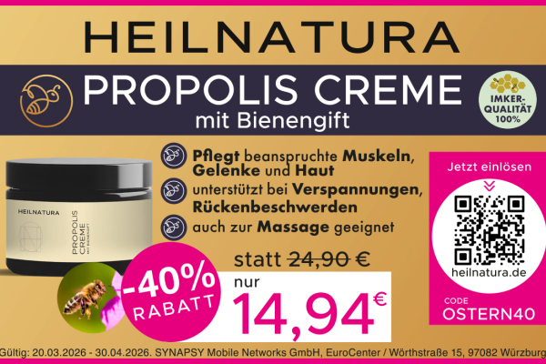 40% RABATT | HEILNATURA PROPOLIS CREME mit Bienengift
