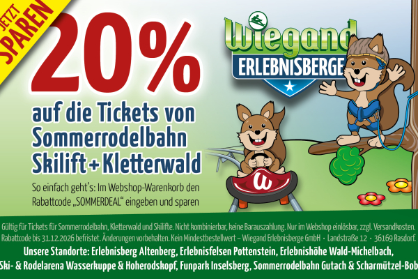 20% RABATT auf die Tickets von Sommerrodelbahn Skilift + Kletterwald